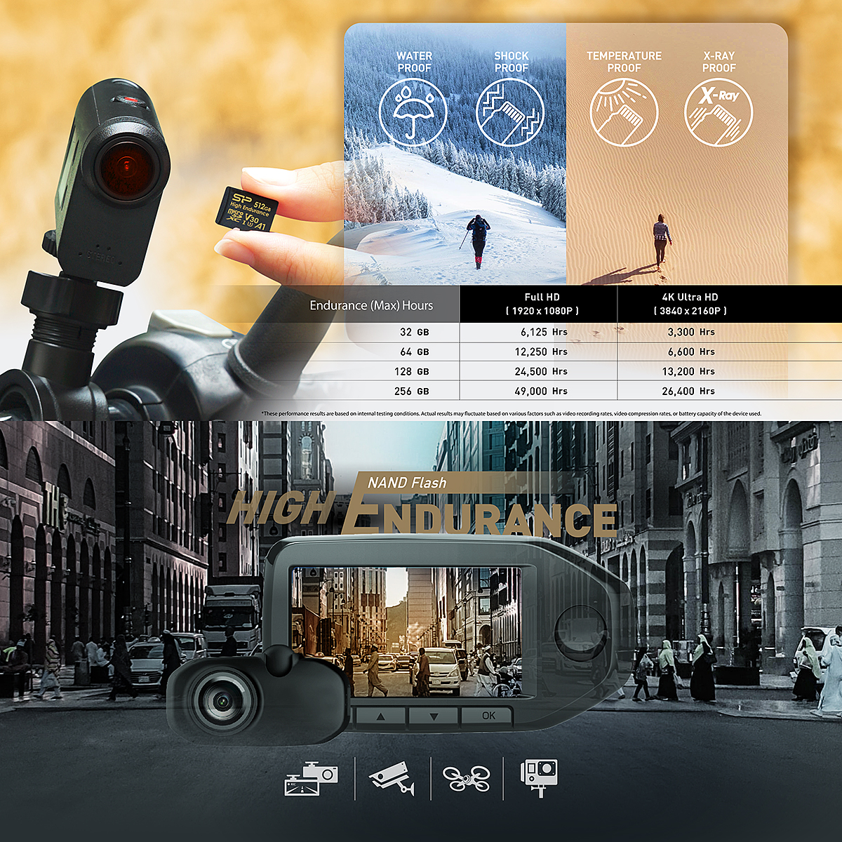 • Designed for continuous recording with surveillance cameras, dash cameras and body cameras