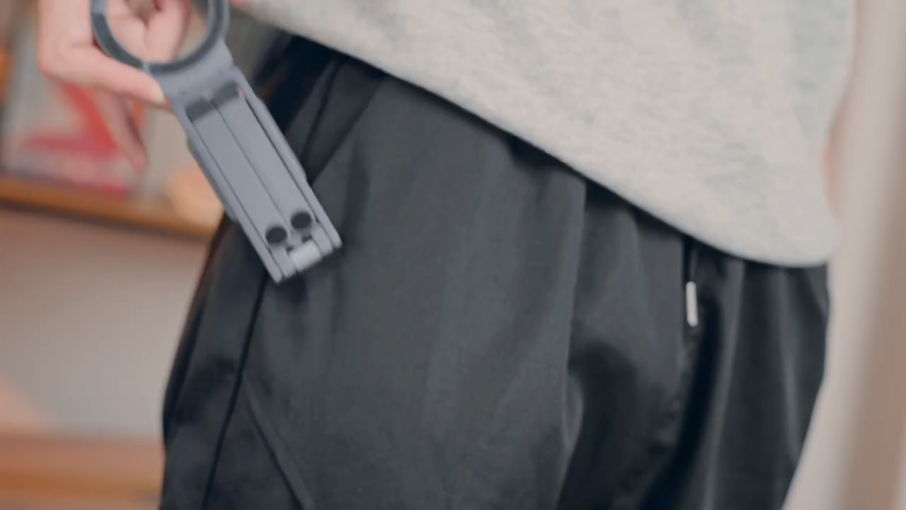Adjust the joints and rotate 180° for effortless positioning. With its triangular base, it stays solid and stable on any flat surface. Shoot from above with the foldable hook, perfect for hanging on monitors, chairs, doors, and rails.
